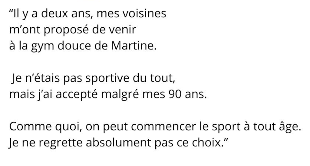 Notamment autour de l’équilibre, du renforcement musculaire au cœur de mon travail de terrain.